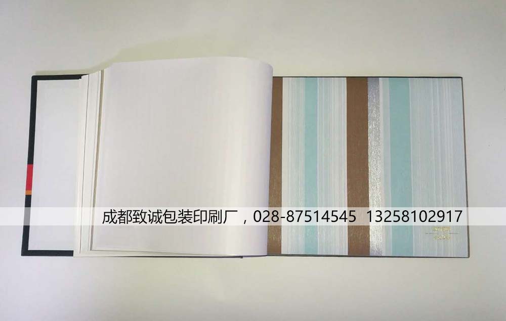 產(chǎn)品材質(zhì):封面3.0工業(yè)紙板,內(nèi)頁157g銅版,墻布樣品為客戶自行提供